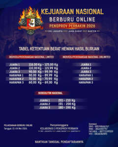 Kolaborasi tiga Pengurus Provinsi (PENGPROV) PERBAKIN –  DKI  Jakarta, Jawa Barat, dan Banten resmi mengumumkan gelaran Kejuaraan Nasional Berburu Online 2026.